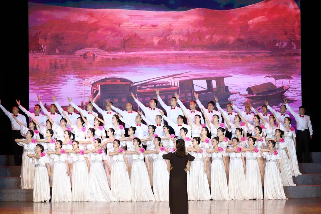 60余位來自科研、生產(chǎn)、管理一線的職工,在沒有任何聲樂基礎(chǔ)的條件下,憑借著一種責任、一種普通黨員和職工群眾對黨的熱情走到了一起,大家克服工作、生活中的種種困難積極參加排練,相互學習,反復練唱,加班練習,大家只有一個心愿,站在舞臺上為黨歌唱!精心打磨、嚴格嚴厲,只為呈現(xiàn)最完美的演出效果。